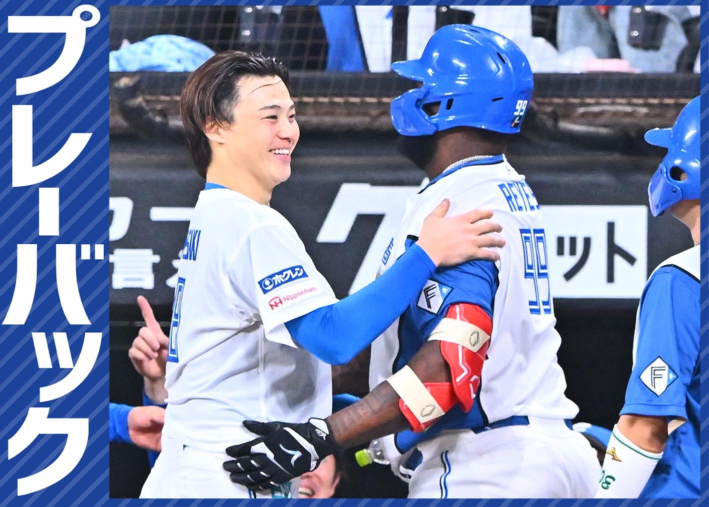 取っては取られの展開となった。0―3の三回に水谷瞬外野手(23)の2点打で1点差。2―3の七回には水野達稀内野手(23)のタイムリーで同点とし、清宮幸太郎内野手(25)が勝ち越し打。さらに、途中から4番に入ったフランミル・レイエス外野手(28)が満塁弾を叩き込み、8―3と試合をひっくり返した。