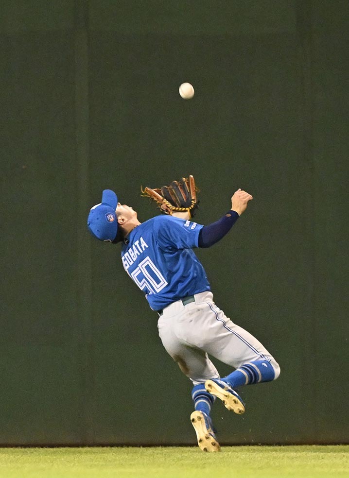 二回に2-2に追いつかれてからは、互いに譲らずゼロ行進。七回以降は6投手をつぎ込み、ついに延長十二回に突入した。最後、勝ちがなくなった十二回裏のマウンドに立ったのは、山本拓実投手(24)。2死一、二塁のピンチの場面で、巨人から移籍したばかりの西武の松原聖弥外野手(29)の大きな飛球は、左翼手の頭上を越えようとしていた。万事休す、そう思われたが、代走で途中出場し、指名打者を解除して左翼守備に就いていた五十幡亮汰外野手(25)が自慢の快足を飛ばしてスーパーキャッチ。ナイスプレーでサヨナラ負けを阻止した。