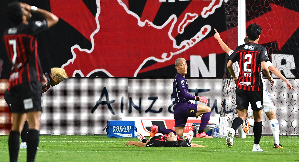 前半9分には相手MF松田の右足シュートが右ポストを叩き、同11分の直接FKではヘッドでゴール左下に叩き込まれるも、これはGK菅野孝憲(40)のファインセーブで辛うじて防いだ。