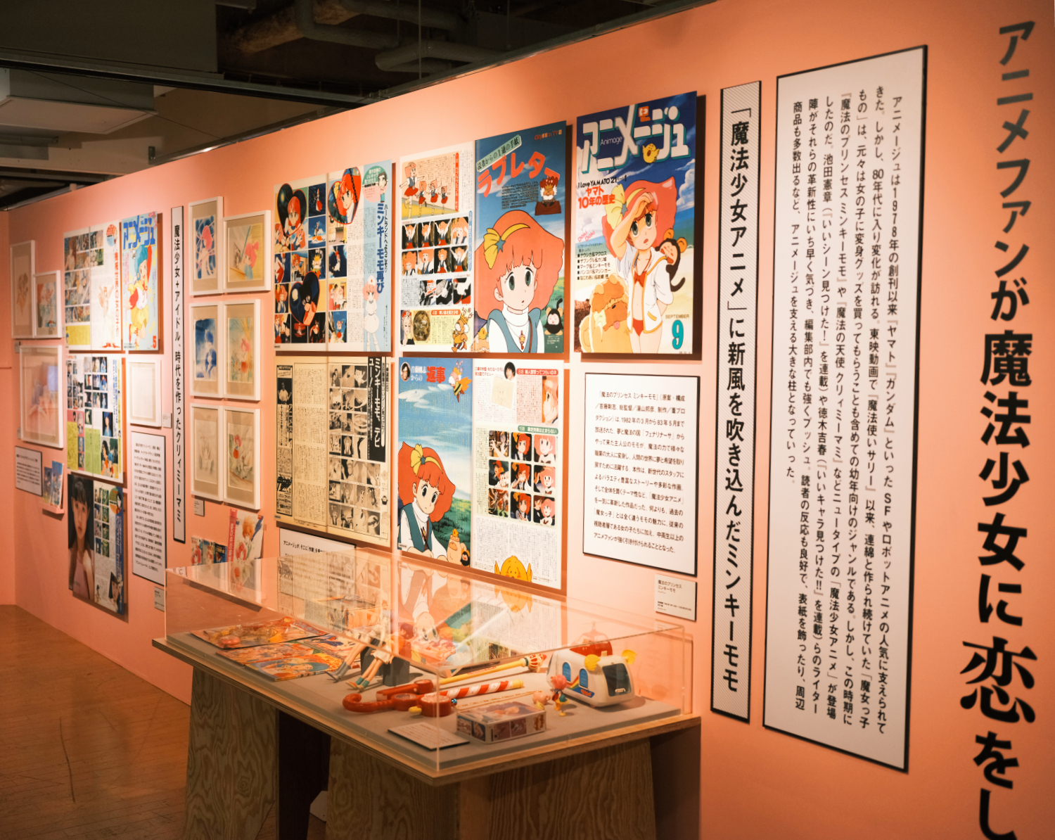 本展覧会は、1970年代末から80年代の雑誌「アニメージュ」に焦点を当て、そこで紹介された当時のアニメを 4つのエリアと展示物で振り返り、スタジオジブリの原点も探る。東京・銀座で2021年4月15日から始まり、札幌での開催は全国13カ所目。入場者は7月3日時点で3万5000人を超えるという。「風の谷のナウシカ」「機動戦士ガンダム」など当時ヒットしたアニメや映画の原画やセル画、作業現場が再現されたスペースの展示や、特設フォトスポットなども設けられており、当時のアニメ、映画を振り返ることはもちろん、年齢問わず楽しめる内容となっている。
