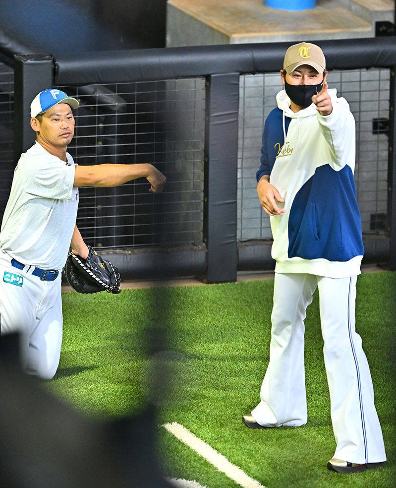 試合前の練習中、新庄監督が思い立ったようにブルペンへ向かった。投球練習をしていた山本拓に投げる頻度が少なくなっていたカーブの使い方をレクチャー。直球、シュートとどう組み合わせるか、コンビネーションがカギだった。