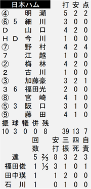 三回2死二塁、4番・左翼の野村佑希内野手(24)が2戦連発となるレフトスタンドへの10号2ランを放ち、先制した。四回に6番・一塁の加藤豪将内野手(29)の3号ソロで3-0に。五回に野村の2点適時打でリードを広げると、六回に1番・二塁のドラ4ルーキー・明瀬諒介内野手(18)が左中間への1号2ランを放ち、7-0とした。