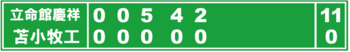 立命館慶祥が苫小牧工業を五回コールドの11-0で完封勝利し、準々決勝に駒を進めた 。打線は一回から毎回の17安打を放ち、先発全員安打を記録。守っても先発の大西悠希投手(2年)が4回3安打無失点、五回は仁平ハルト投手(3年)、田畑悠樹投手(3年)の2投手で無失点に抑えた。