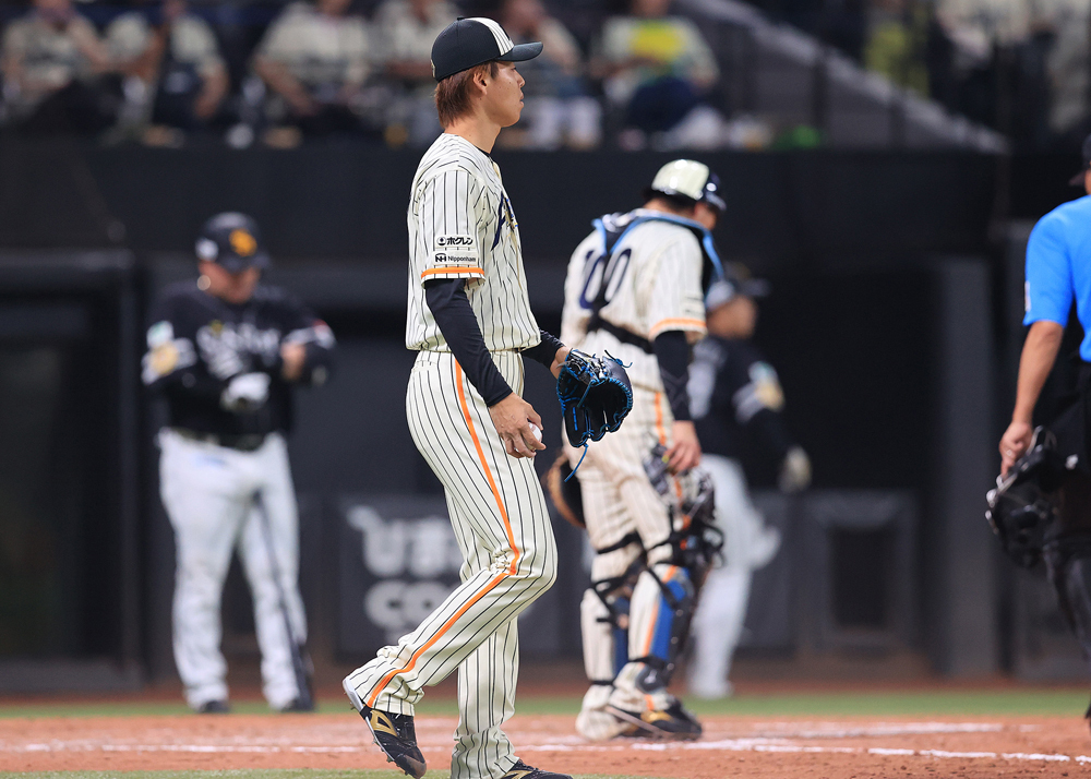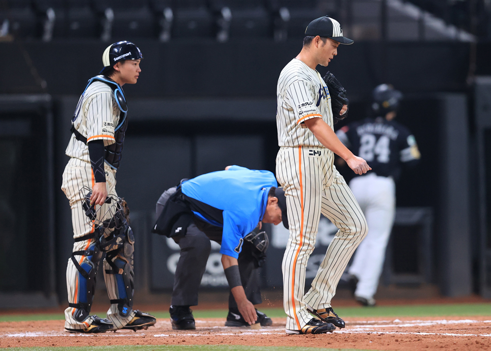 3―3の十二回、8番手登板の上原健太投手(30)が1死後、四球を出し、犠打で2死二塁。ここで3番の栗原を申告敬遠で歩かせ、マウンドを降りた。継投した斎藤友貴哉投手(29)は山川に遊撃内野安打を許して満塁。続く近藤に中前へはじき返され、3―5と2点を勝ち越された。