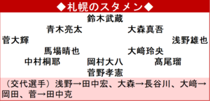 序盤のピンチを防いだ札幌は、徐々に攻撃の形をつくり出した。同15分にDF馬場晴也(22)がミドルシュートでゴール枠内をとらえるが、相手GKにセーブされた。同20分にはカウンターから最後はFW菅大輝(25)がシュートを放つが、こちらもGKにキャッチされた。