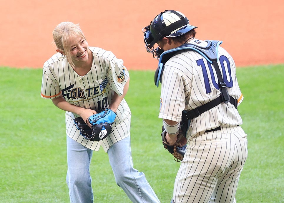 日本ハムの歴史が刻まれたユニホームに身を包み、ファンの歓声を浴びながらダイナミックなフォームで投げ込んだ。投球は大きく右にそれたが、大満足だった。