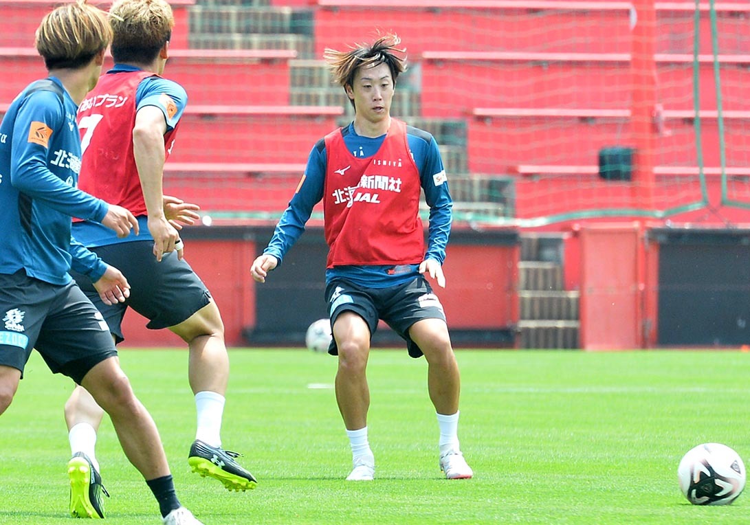 札幌加入後初の練習に参加したFW白井=撮影・工藤友揮