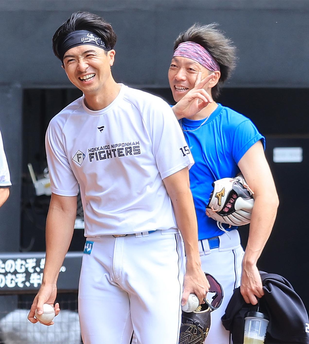 2023年7月、日本ハム時代の上沢(左)と宮西