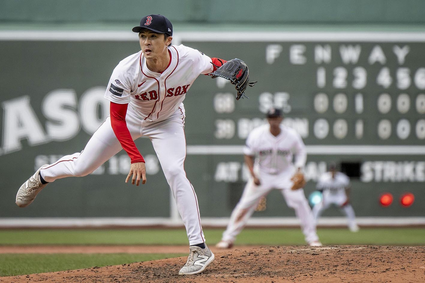 5月に行われた本拠地ボストンでのジャイアンツ戦で、八回からメジャー初登板を果たした上沢(ゲッティ=共同)