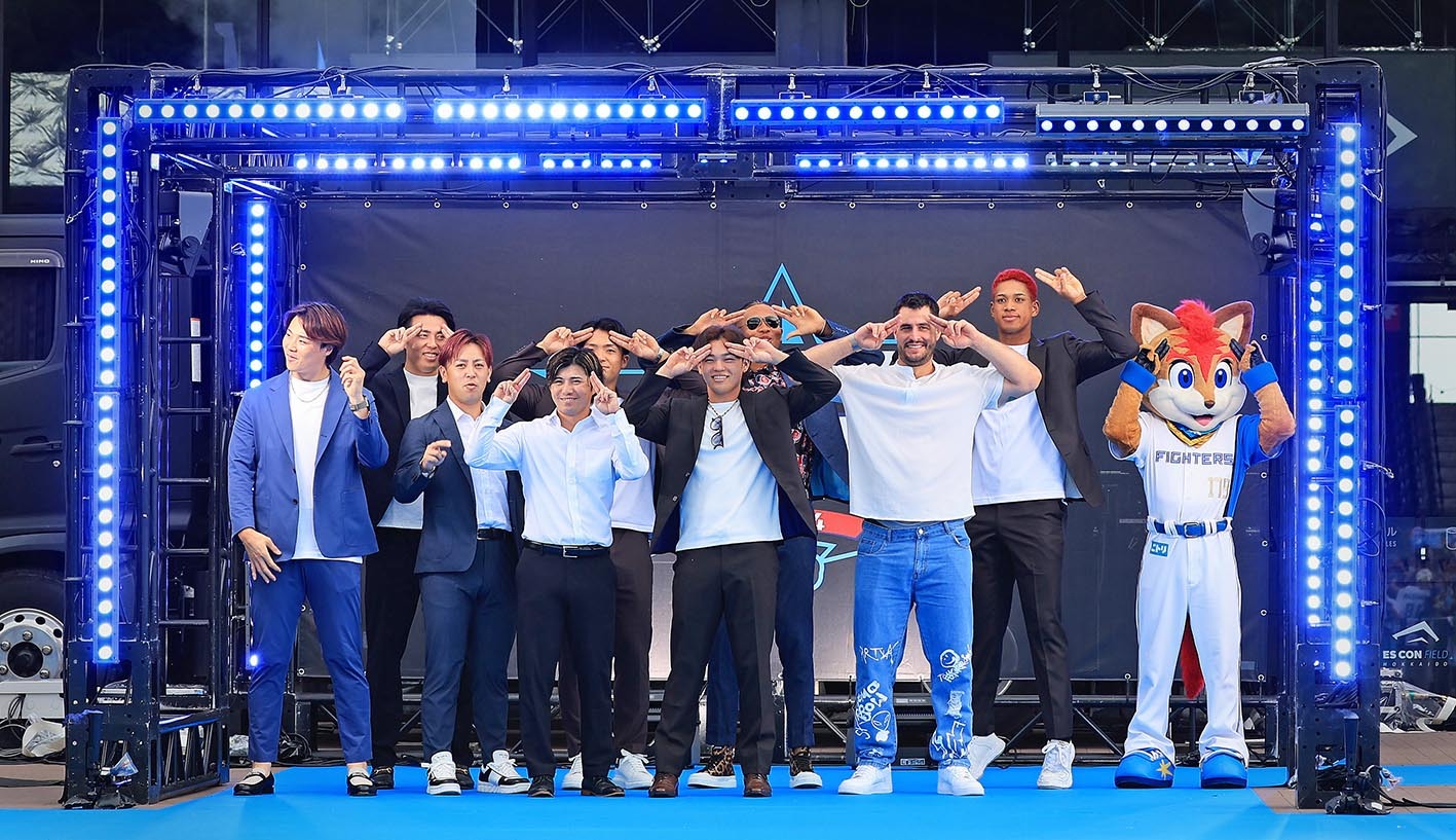 ブルーカーペットセレモニーで日本ハムナインが〝ゆあビーム〟ポーズ