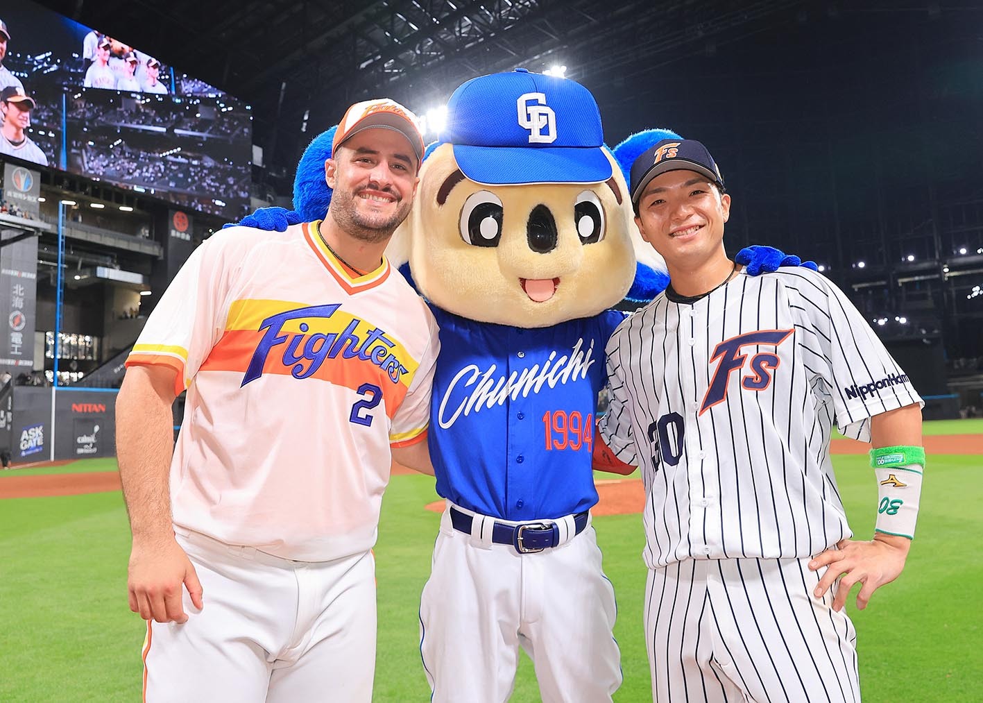 試合後には古巣・中日のマスコットキャラクター「ドアラ」を発見。旧交を温め、第2戦へ気持ちを向けた
