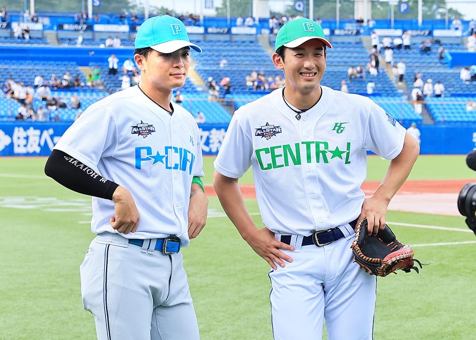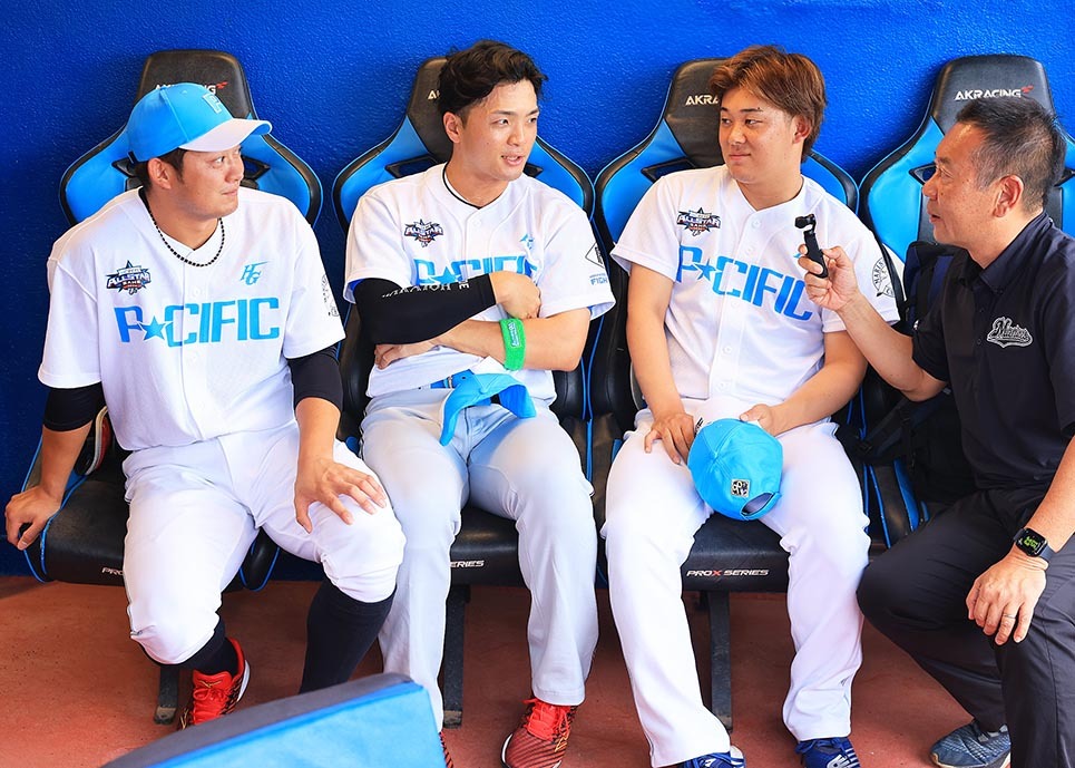 今回のオールスターで仲を深めた楽天・則本と一緒に取材を受ける。