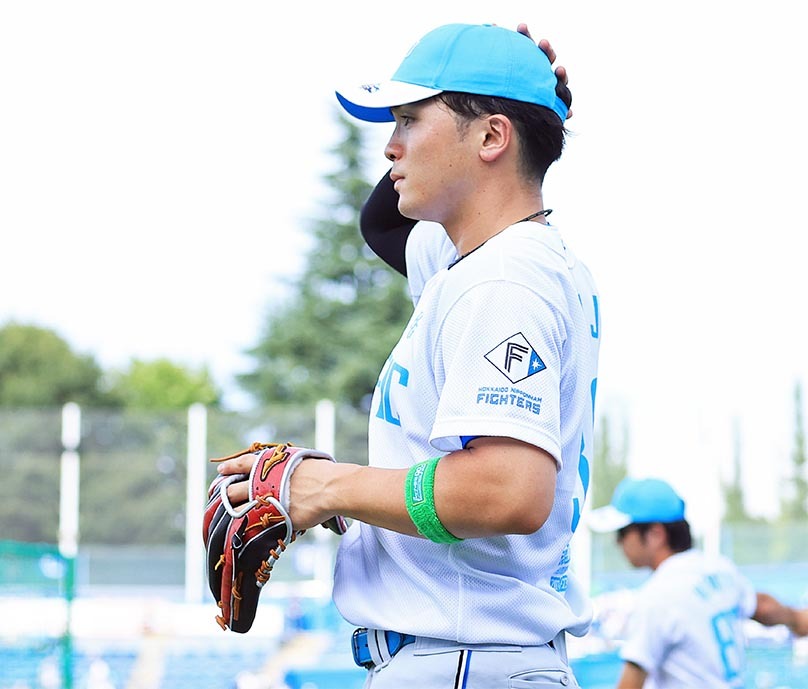 ベンチ前で上川畑とキャッチボールをしながら「帽子、マジ小さい」とポツリ。帽子の大きさがどうしても気になる様子。