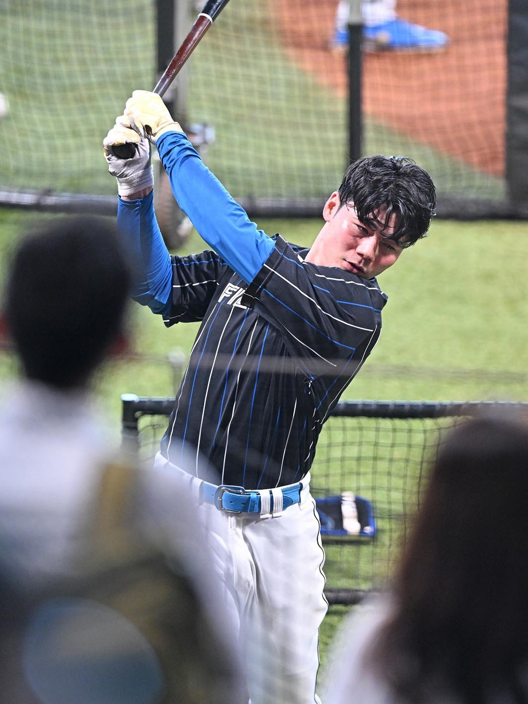 26日からの後半戦へ向けて打撃練習をする清宮=撮影・小田岳史