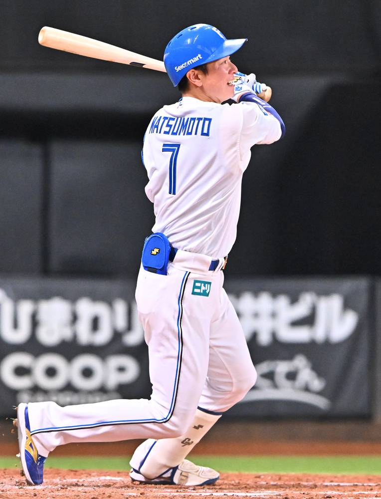 打線は五回、先頭の6番・松本剛外野手(30)が左中間を破る二塁打で出塁。続く清宮幸太郎内野手(25)が右前打を放ち、無死一、三塁とした。ここで8番の田宮裕涼捕手(24)が二ゴロ併殺、この間に松本剛が先制のホームを踏んだ。ところが、六回以降はゼロ行進。得点圏に走者を進めることができなかった。