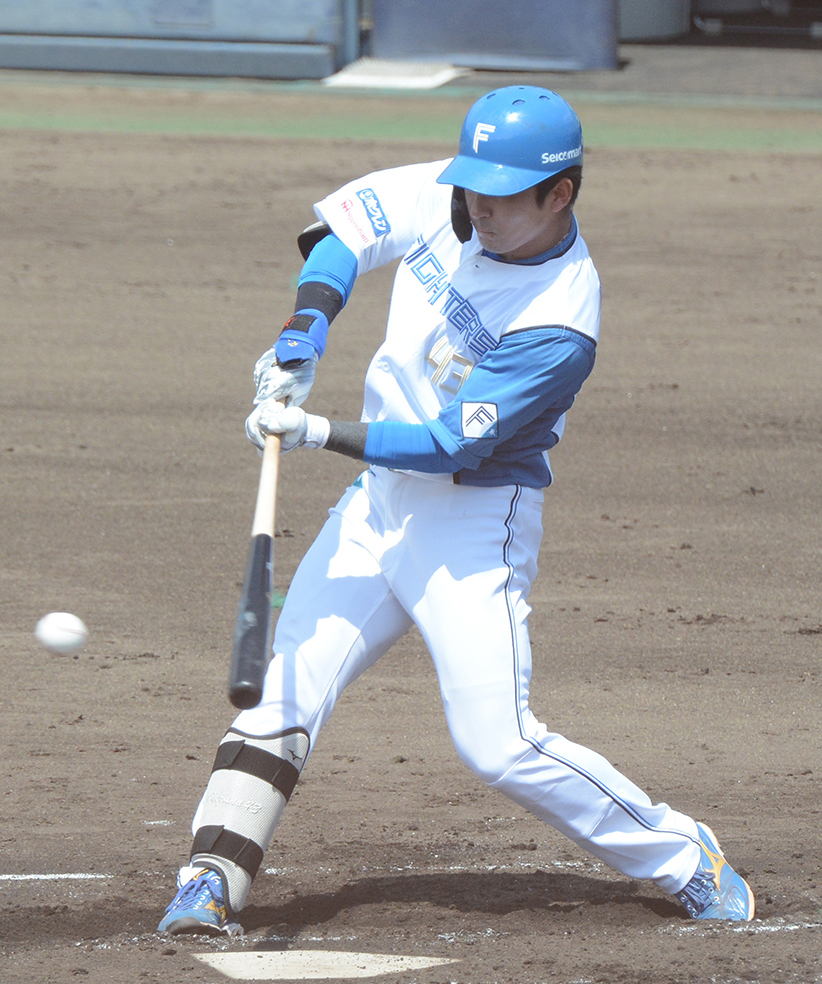 復帰3戦目の2軍ロッテ戦で2安打を放った水野=撮影・岩田浩之