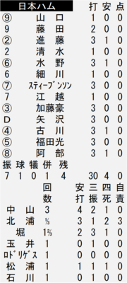 打線は4安打で0封負け。ロッテの6投手を攻略できなかった。三回に2死一、三塁、六回には1死一、三塁のチャンスをつくったものの、決定打を欠いた。