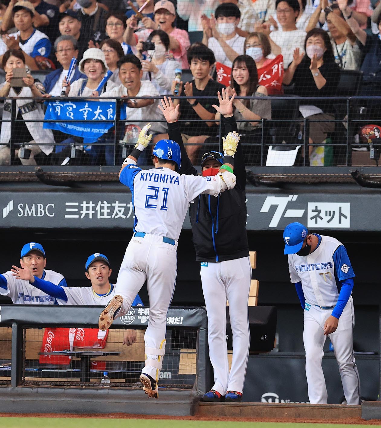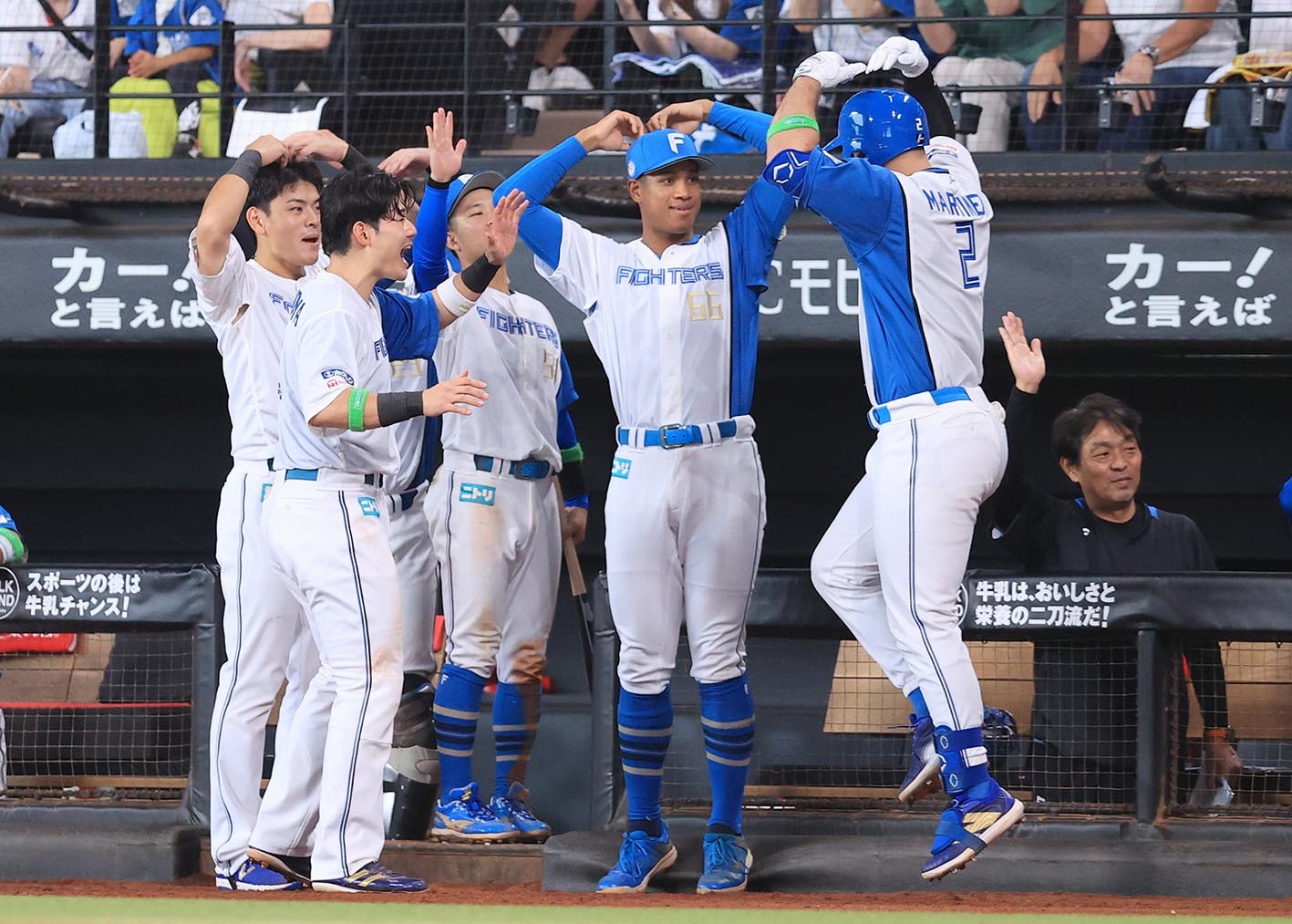 打線はトータル11安打7得点。一回には清宮幸太郎内野手(25)が先制の4号ソロをマーク。二回には石井一成内野手(30)の4号ソロと浅間大基外野手(28)の適時二塁打で2点を奪った。3―5で迎えた三回には松本剛外野手(30)の左犠飛で1点差に詰め寄った。五回には4番のアリエル・マルティネス捕手(28)が逆転の11号2ランをかっ飛ばした。