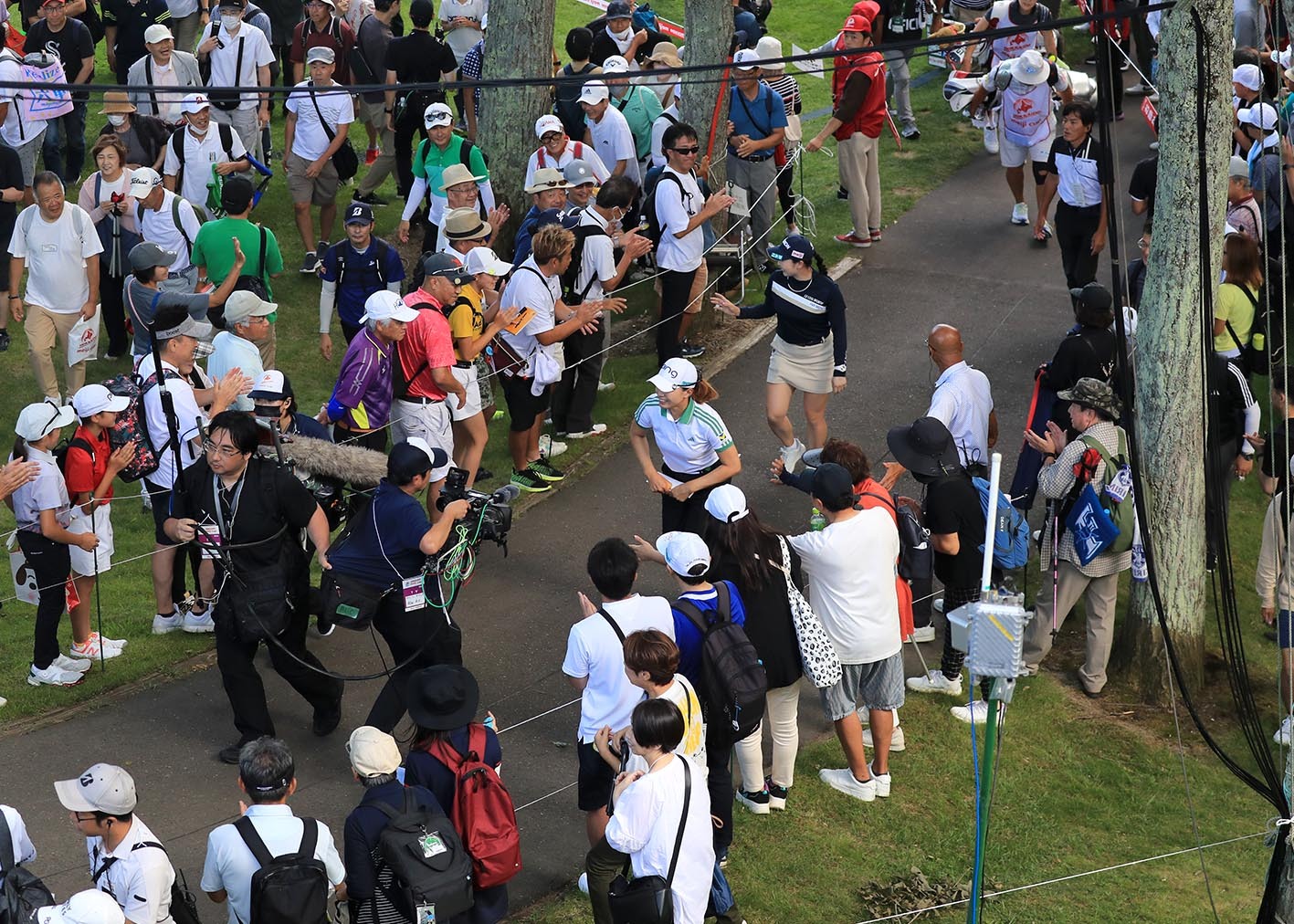 2019年の初日の入場者数は、2921人。3日間で1万6400人を動員した。今年は3462人で昨年初日の約3倍。大会本部によると、前売り券の売れ行きは上々。コロナ対応で実施していなかった、70歳以上の入場無料も再開。用意したギャラリー駐車場は午前中の内に満車で駐車場待ちの行列ができた。残り2日間の天候は曇り予報。最高気温も28度と観戦にはぴったり。担当者は「このまま、伸びていってくれれば」と、期待を込めた。