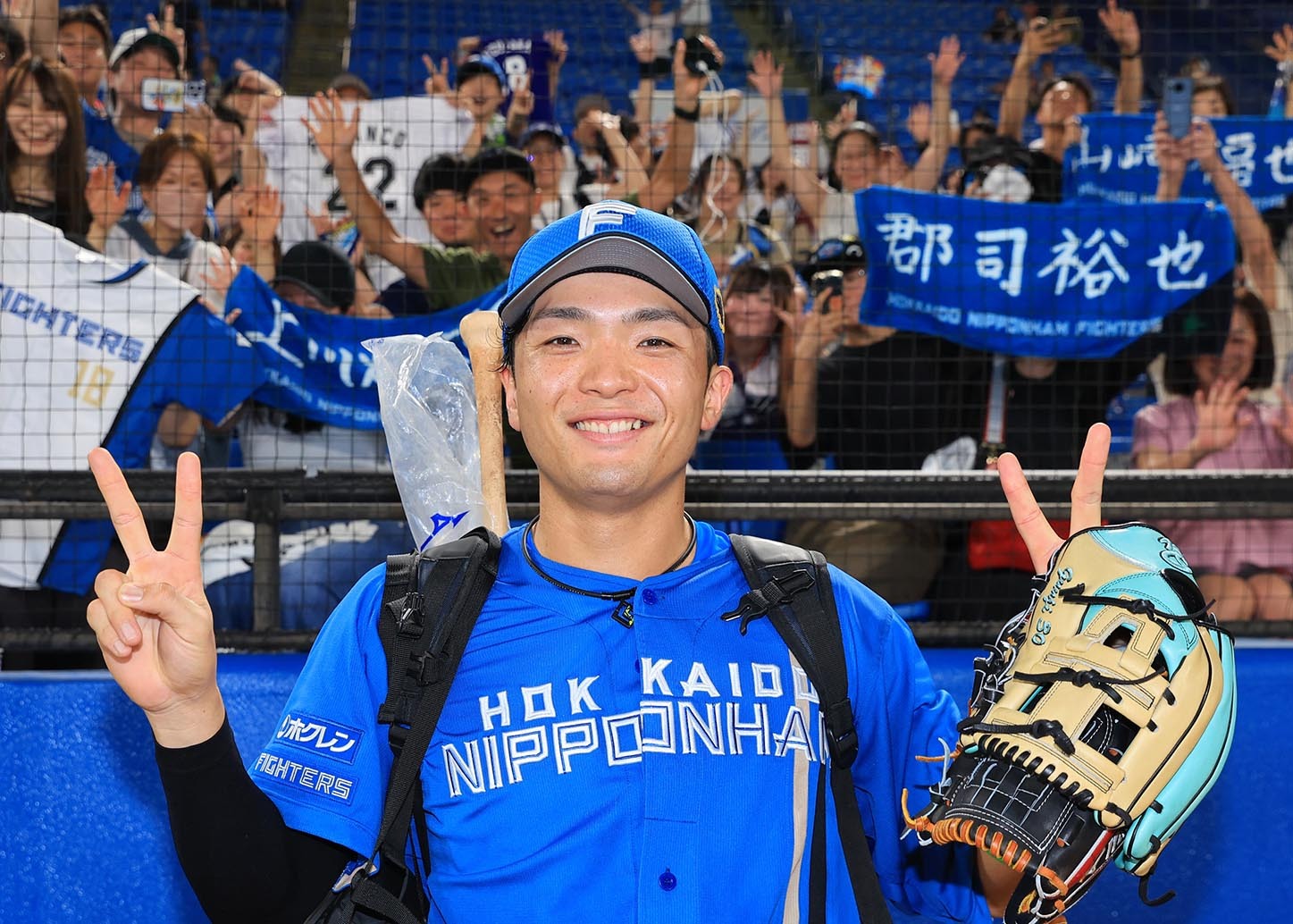 日本ハムの郡司裕也捕手(26)が2日、ペイペイドームで行われたソフトバンク戦に「3番・三塁」で出場。4点ビハインドの四回に2試合連発となる10号ソロを放ち、反撃ムードを高めた。前日のサヨナラ弾の勢いそのままに、プロ5年目で初の2桁本塁打に到達。乗りに乗っている男の試合後の一問一答は以下の通り。