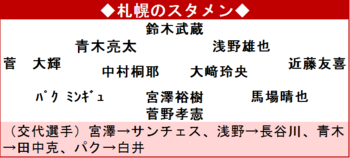 しかし、札幌も最後まで諦めていなかった。同9分、途中出場のMF田中克幸(22)が敵陣右サイドのスローイングの流れからボールを受け、ゴールまで斜め45度、約25メートルの距離から左足を一閃。ニアサイドに突き刺す強烈ミドルで同点ゴールを奪った。
