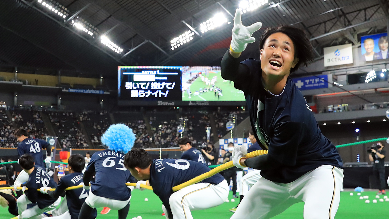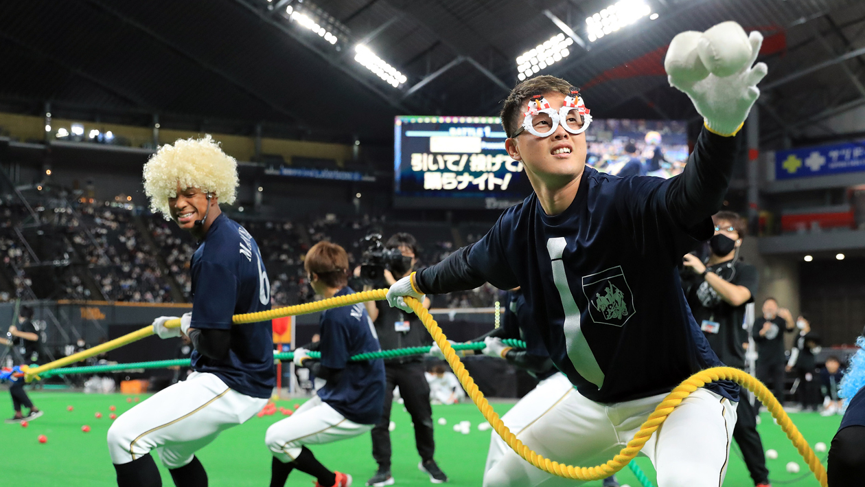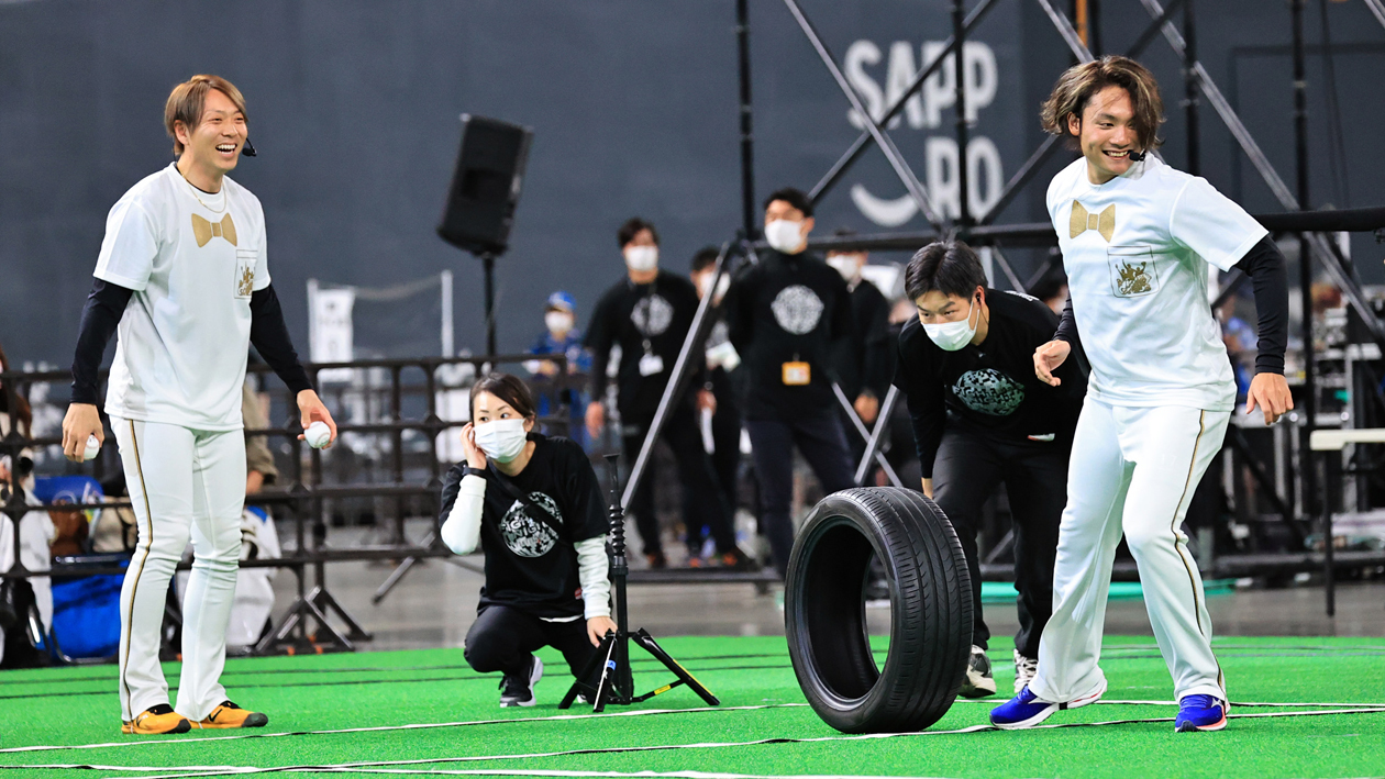 投手チーム「ナイトグラブズ」のキャプテンを務め、勝利に導いた。前半からキレのあるダンスを披露するなど、活躍度は頭一つ抜けていた。MVPにも選出され「フェラーリ1年間乗り放題券」を獲得。「ファンフェスへの意気込み、僕だけ飛び抜けていた。何より楽しもうという気持ちが、このフェラーリを生んだと思います」とコメントした。(札幌ドーム)
