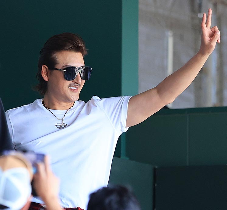 10時15分に球場へ到着した指揮官は、白いTシャツにサングラス姿で登場。記者席後方に姿を現すとスタンドに手を振り、笑顔を振りまいた。気付いた観客たちは一目見ようと周囲に殺到。多くの観衆が通路に押し寄せる危険な状況となった。