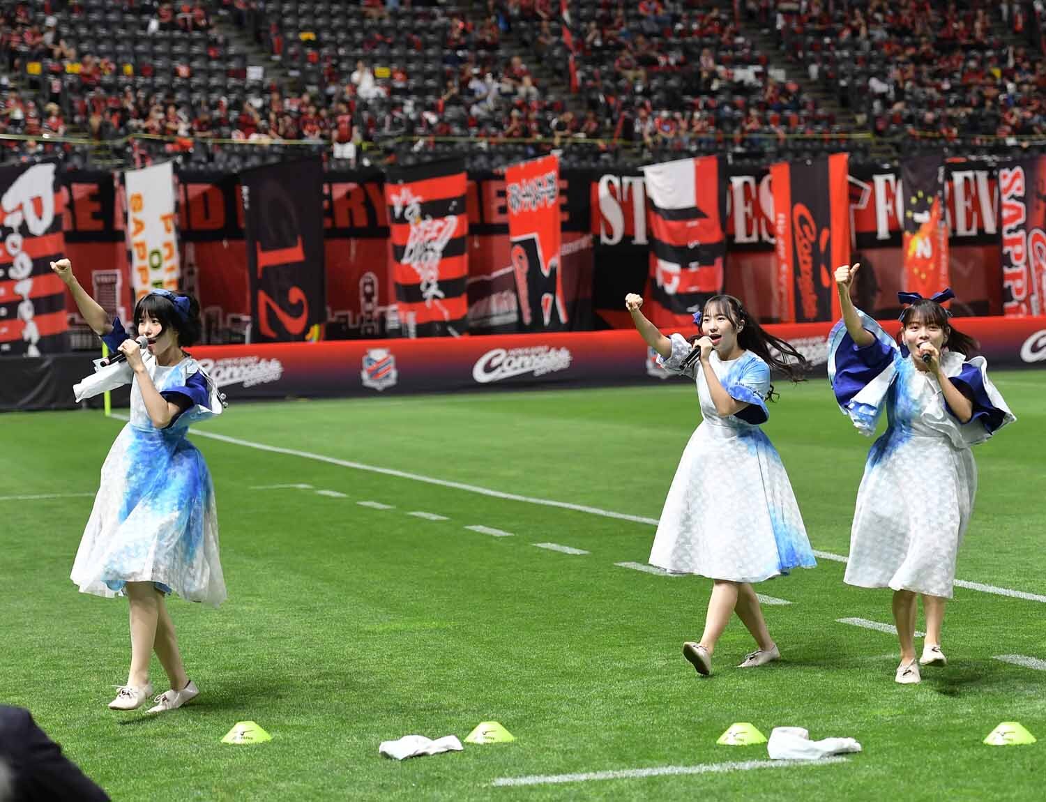 「大和ハウスプレミストドームで歌うのが、目標、夢だったので、すっごく嬉しかったです。あんな大きな会場の360度にお客さんがいることが初めてだったので、不思議な感覚でしたし、サッカーの試合を見に来ている人たちも見てくれたので、嬉しかったです。試合は最後の最後で田中克幸選手がゴールを決めて、同点になったときはめっちゃ感動しました」