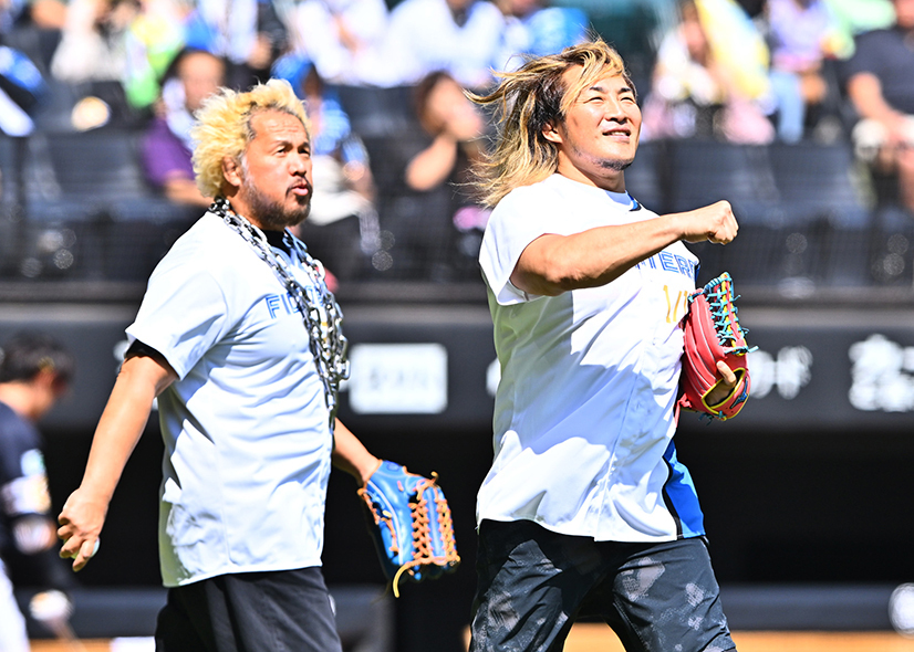 新日本プロレスの棚橋&真壁がファーストピッチに登場 新庄監督にオファーも!?