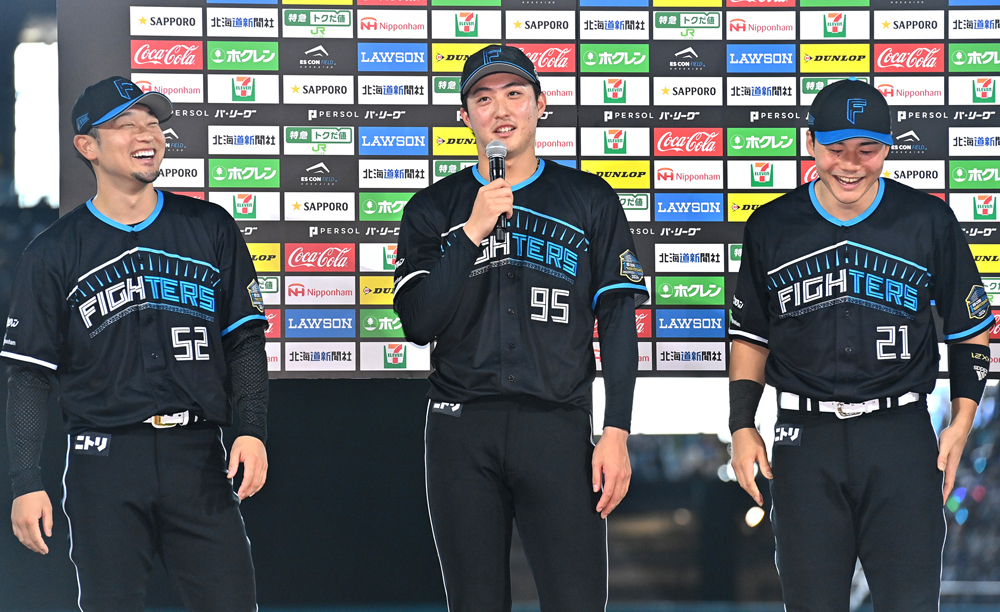 投げては先発の伊藤大海投手(26)が5回5安打3失点で10勝目(4敗)を手にした。その後、マウンドに上がった4投手は無失点リレーを披露した。中でも八回に4番手で登板した池田隆英投手(29)は3者連続三振でパーフェクト投球。ラスト九回に登板した柳川大晟投手(21)も3者凡退に封じた。