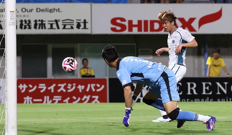 前半9分に貴重な先制点を決めた近藤は、ゴールシーン以外にもロングボールのターゲットとなるなど大車輪の活躍を見せた。しかしその分、足にかかる負担がいつも以上に大きかった。「たぶんスゲさん(GK菅野)も1本も繋がないで全部大きく蹴っていたので、(ヘディングの競り合いで)飛ぶ回数が多かった。あまり背が高くないので、思いっきり飛ばないと競り合えない。その回数が多かったので、ちょっと(つるのが)早かったですけど、しょうがないかなと」と振り返るなど、まさに〝完全燃焼〟して、チームを勝利へと導いた格好だ。