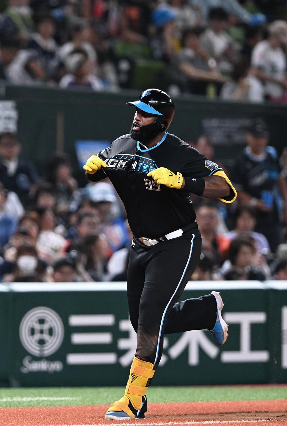 日本ハムのフランミル・レイエス外野手(29)が1日、西武戦に「4番・DH」で先発出場。一回の第1打席で23試合連続安打となる先制の適時内野安打を放ち、球団記録まであと「1」に迫った。六回の第3打席でも17号ソロをマークし、本塁打数はチーム単独トップに浮上。大砲の勢いが止まらない。試合後の一問一答は以下の通り。