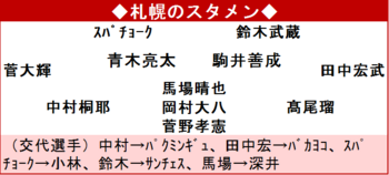 するとこれが奏功し、札幌の攻撃が活性化する。後半3分、右サイドからカットインした菅がペナルティーエリアやや右のゴールまで約25メール付近からミドルシュート。これが相手DFに当たってゴール左へ吸い込まれる。