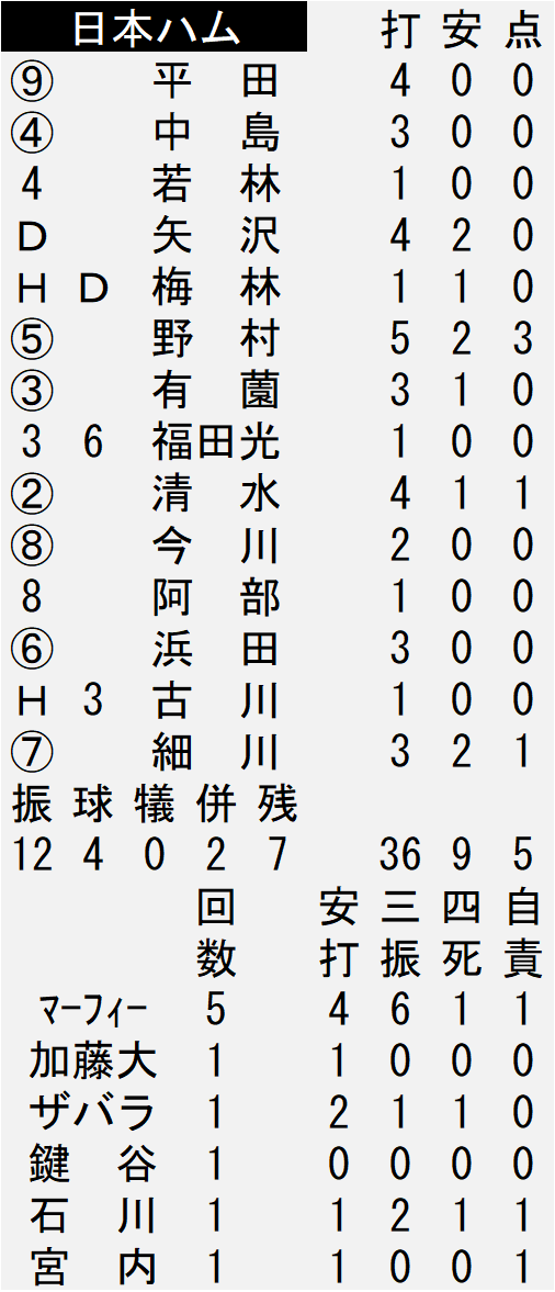 先発登板したパトリック・マーフィー投手(29)は5回4安打2失点と試合をつくった。八回に4番手登板した鍵谷陽平投手(33)は打たせて取って1回をパーフェクトに抑えた。