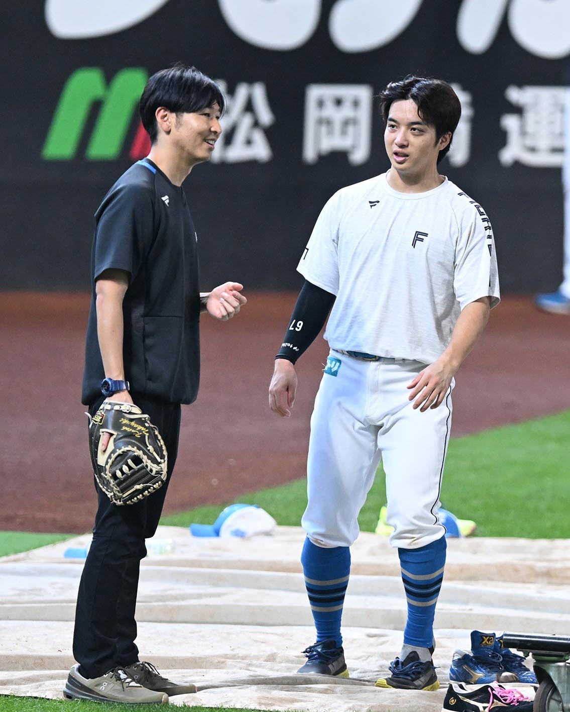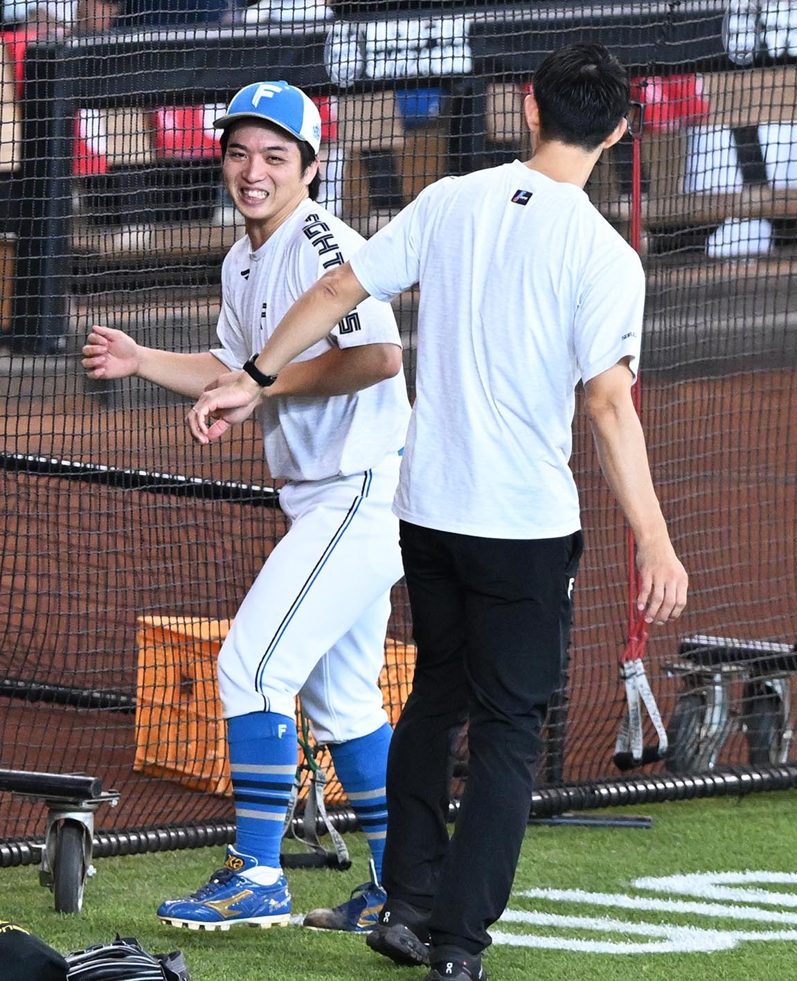 言葉通りに、この日の練習もルーティンを貫いた。球場入り後はお気に入りのサウナスーツを着てフィールド内を散歩。「河野さんや池さん(池田)から『結構、汗が出るからいいよ』って勧められて、まねして買っちゃいました(笑)」と長時間、歩き回り、じっくり体を温めた。