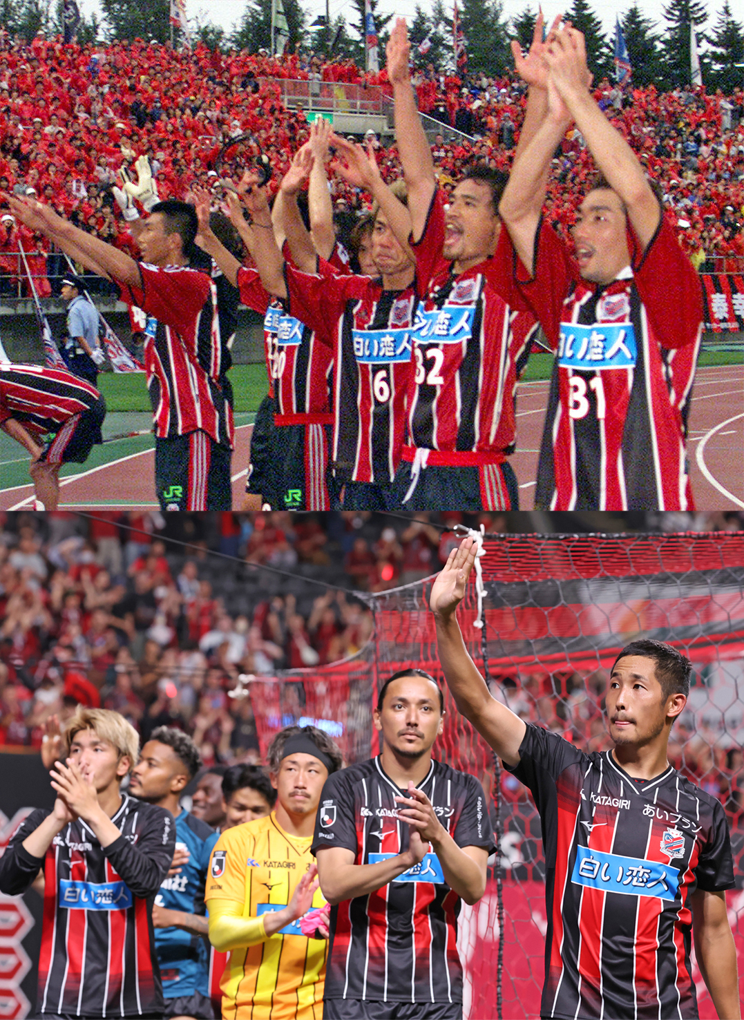 札幌がリーグ戦で赤黒、そして白の縦縞のユニホームを着て待望の初勝利を挙げたのは、8月10日に札幌厚別で行われたG大阪戦のこと。くしくも今年の特別ユニホームを初めて着用した福岡戦が行われたのも8月10日であり、22年の時を経た2着のユニホームのつながりに不思議な運命を感じる。