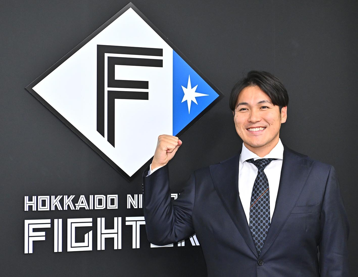 「作り笑顔です(笑)。いい笑顔ですね。締めくくりは、やっぱりファイターズで取ってもらって。このスーツで最後(引退セレモニーにも)行こうかな」