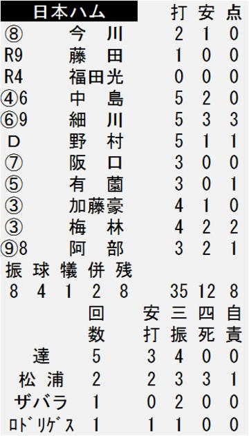 打線は、二回2死一、二塁で梅林優貴捕手(26)が先制の2点適時二塁打を放つと、三回には先頭からの4連打で2点を奪い、1死一、三塁では有薗直輝内野手(21)が犠牲フライを放って計3得点。六回、八回にも効果的に追加点を奪い、計12安打の猛攻で突き放した。