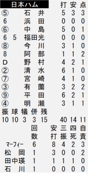 投げては先発のパトリック・マーフィー投手(29)が6回3失点と試合をつくった。その後は小刻みな継投を披露。九回に4番手で登板した石川直也投手(28)は1回をパーフェクトに抑えた。