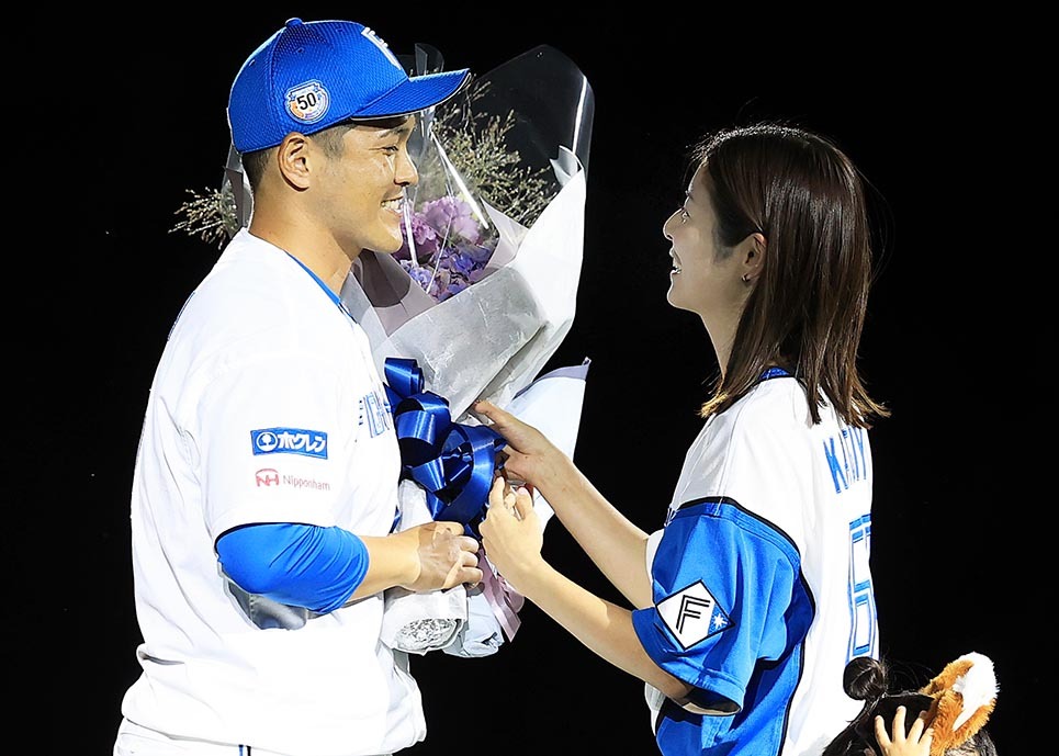 「(鍵谷は)泣いたりしないんじゃないですか。私の方が(顔が)ぐしゃぐしゃになりそう」。道産子右腕の人柄を物語る温かいセレモニーに、大きな瞳から涙がこぼれた。