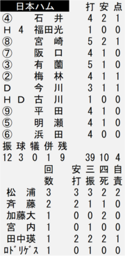 投げては先発の松浦慶斗投手(21)が味方失策も絡むなどし、3回3安打2失点。2番手の斉藤伸治投手(26)は2回2安打無失点と好投した。その後は4投手による小刻みなリレーでリードを守った。九回に6番手で登板したブライアン・ロドリゲス投手(33)は1回をパーフェクトに抑えた。