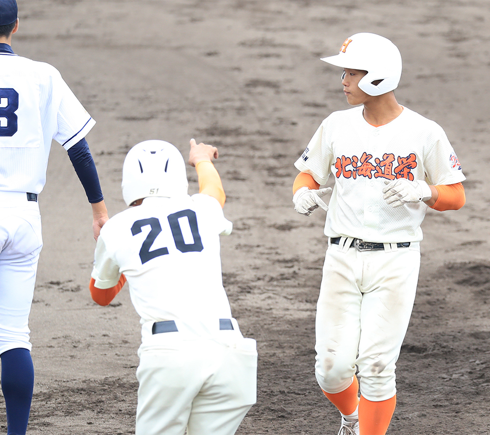 昨夏の南北海道準優勝の北海道栄は、逆転コールドで4季ぶりの代表決定戦進出を決めた。公式戦初登板の三浦龍神投手(1年)が、6回1失点とゲームを作ると、この秋からベンチ入りした3番・蝦名悠一塁手(2年)が2本の適時打と犠飛で4打点をマークした。5日の代表決定戦で駒大苫小牧と対戦する。