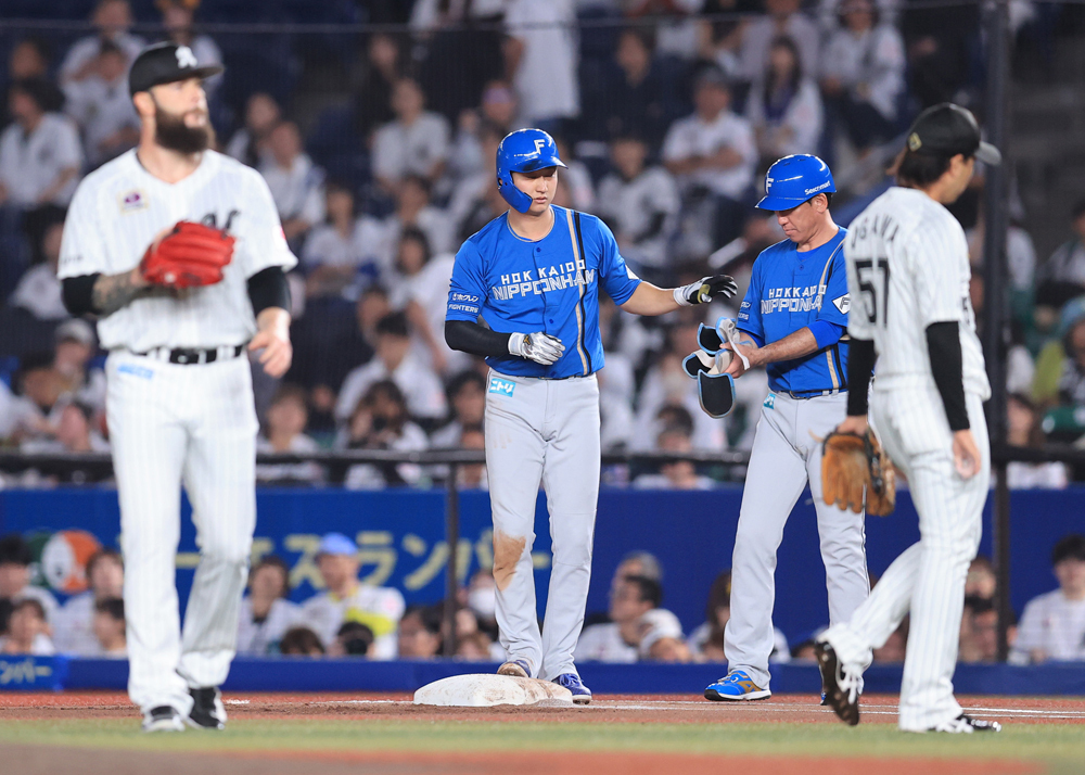 打線は一回にロッテ先発カイケルのアクシデントもあった中で先頭から3連打。4番のフランミル・レイエス外野手(29)は併殺打に倒れたが、その間に先制点を挙げた。九回には清宮幸太郎内野手(25)が無死一塁から打った瞬間にそれと分かる14号2ランを右翼席に運んだ。