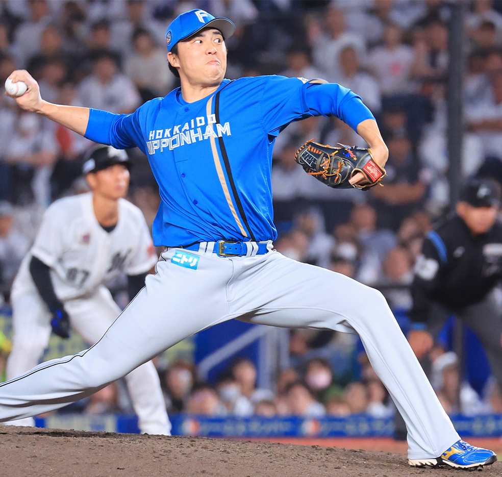 3点リードの九回1死一塁の場面で河野に代わって6番手で登板。和田を153キロで左飛に打ち取り、続く佐藤も左飛に抑えた。「無心でバッターを抑えるだけでした。自分の全てを出し続けるだけです」と、ホッとした表情を浮かべた。