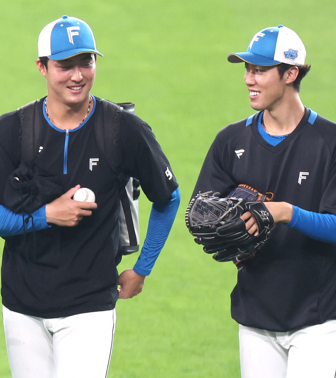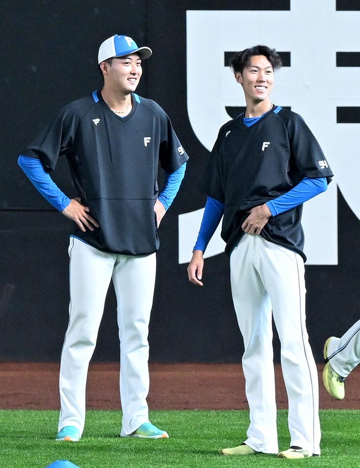 日本ハム選手同士の仲の良さを独自調査する『気になるあの2人』第7回は、今年支配下登録された高卒3年目の同期コンビが登場です。周囲から「ツインタワー」と呼ばれている福島蓮投手(21)と柳川大晟投手(21)に5つの質問をぶつけ、関係性を深掘りしました。対談形式になっていますので、2人のゆる~い掛け合いをお楽しみください。