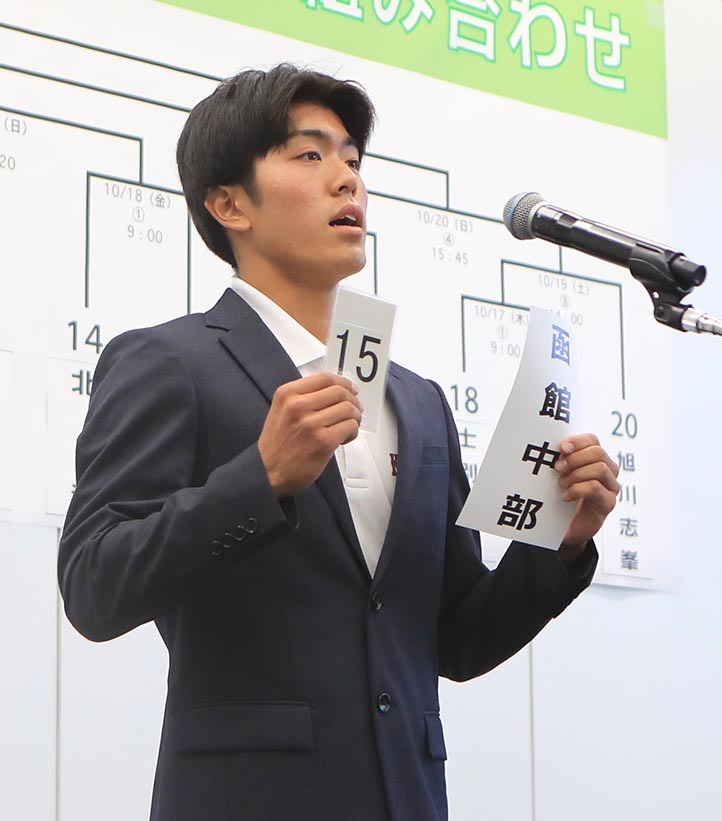 16日に大和ハウスプレミストドーム(プレド)で開幕する、秋季北海道高校野球大会の組み合わせ抽選会が行われ、18年ぶり7度目の函館中部は、18日の2回戦で2連覇を狙う北海と対戦することが決まった。大会は20日に4強が出そろい、休養日を挟んで23日に準決勝、24日に決勝が行われる。