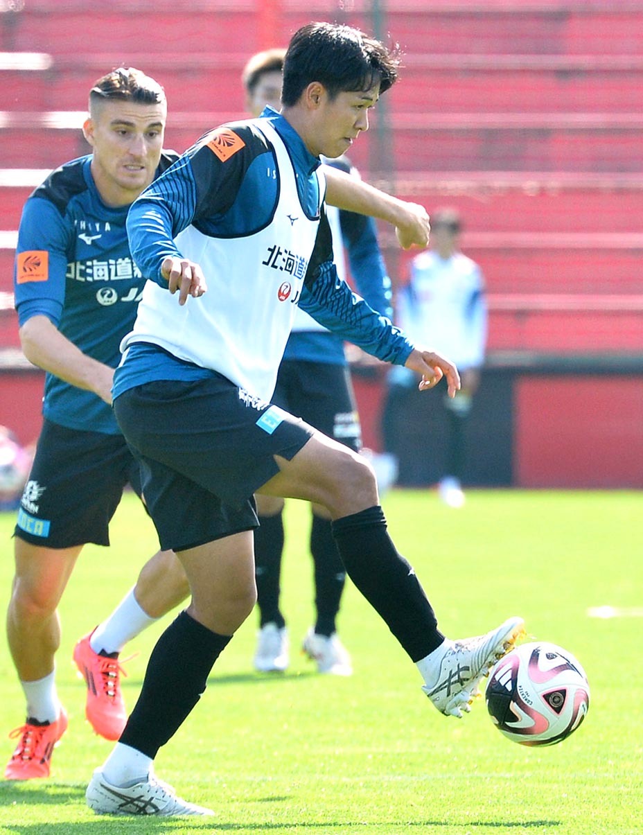 北海道コンサドーレ札幌は19日のアウェー名古屋戦(豊田ス)に向け、11対11プラスフリーマンでの紅白戦などを行った。負傷のため戦列を離れていたDF髙尾瑠(27)は主力組の一員としてプレー。故郷・愛知県でのアウェー戦に向けて復活を印象づけた。