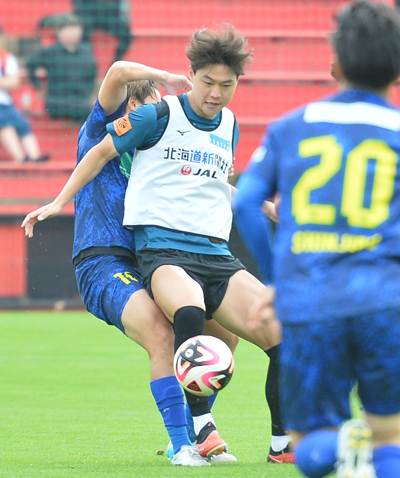 12日に行われた北海道十勝スカイアースとの練習試合(30分×4、8〇3)では、北海道コンサドーレ札幌FW金健熙(キム・ゴンヒ、29)が6月12日天皇杯2回戦の栃木シティ戦以来、4カ月ぶりに実戦復帰した。残り5試合となったJ1残留が懸かるリーグ最終盤に向け、大型ストライカーが復活ののろしを上げた。