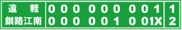 釧路江南はエース佐藤勝輝投手(2年)が、1失点完投した16日の1回戦に続き、2戦連続で先発した。遠軽は1年生エースの塩田禅投手が先発した。
