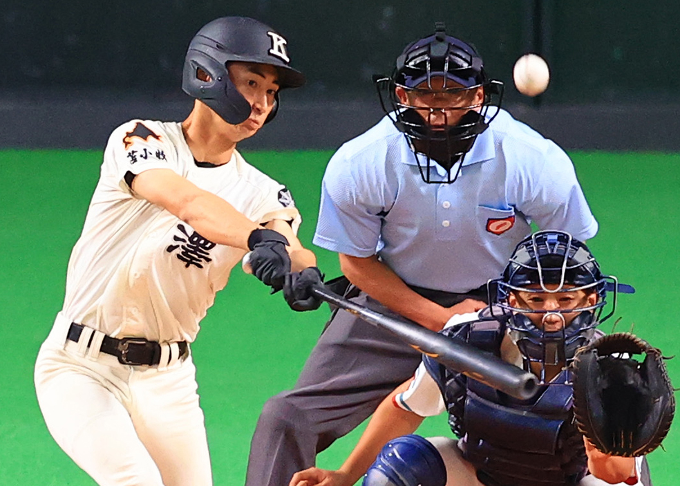 先制したのは旭川志峯だった。一回2死一塁、4番・億貞壮汰遊撃手(1年)が左翼線への適時二塁打を放ち、一走が一気に生還した。五回に駒大苫小牧に追いつかれたが、直後の攻撃で1番・合田湧翔中堅手(2年)の左翼線への適時二塁打で再び勝ち越した。